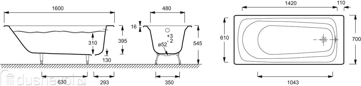 Melodie 160х70см, чугунная ванна, без антискользящего, арт. E2932-00, Jacob Delafon