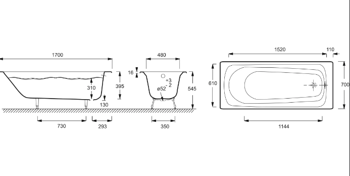 Чугунная ванна Melodie 170х70 см, антискользящее покр.
