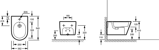 Биде Bastille 36,2х54 см, подвесное, без крышки