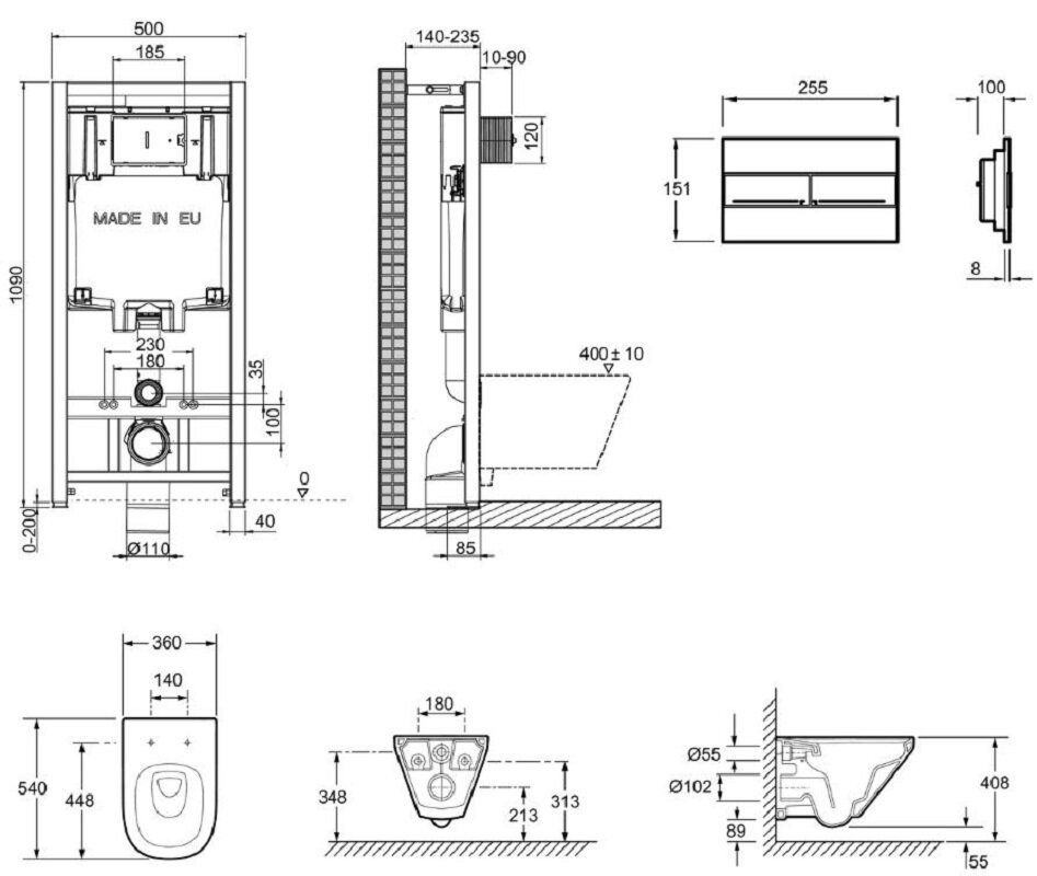 Комплект унитаза с инсталляцией Modern Life глубина унитаза 54см, клавиша хром глянец, с микролифтом, безободковый, быстросъемное
