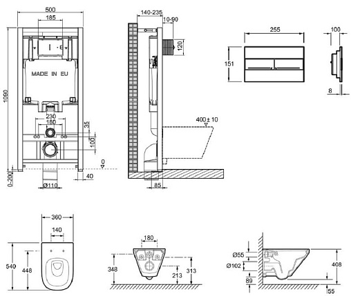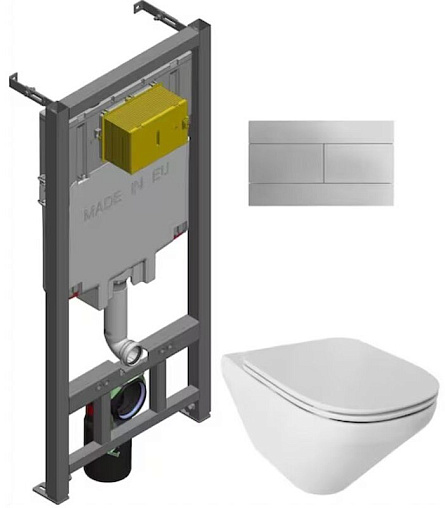 Modern Life, комплект унитаза с инсталляцией, глубина унитаза 54см, клавиша хром глянец, с микролифтом, безободковый, быстросъемное, арт. E21776RU-00,