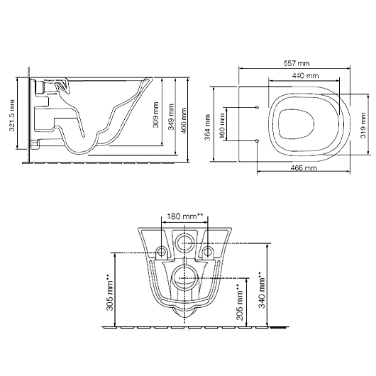 Полностью оснащенный бачок с механизмом экономии воды на 3/6 л
