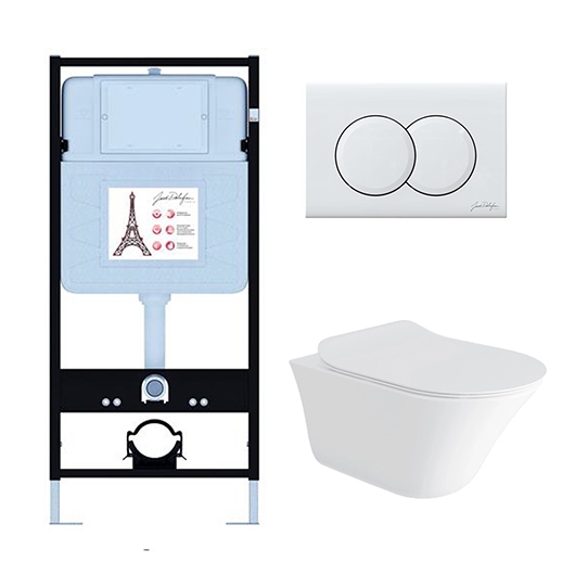 Vive, комплект унитаза с инсталляцией, клавиша белая, с микролифтом, безободковый, арт. E28079RU-0, Jacob Delafon