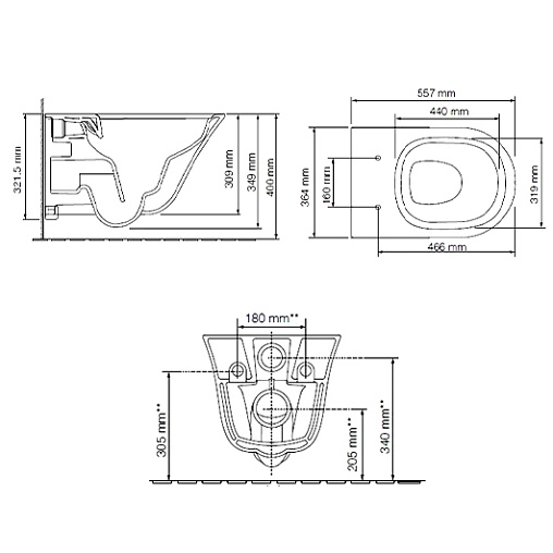 Комплект унитаза с инсталляцией Vive клавиша белая, с микролифтом, безободковый