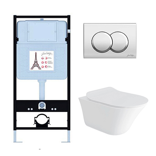 Комплект унитаза с инсталляцией Vive клавиша хром глянец, с микролифтом, безободковый