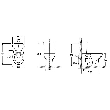 Унитаз-компакт Louise 36х64,7 см, микролифт, тонкое, горизонтальный выпуск, нижняя подводка, с сиденьем