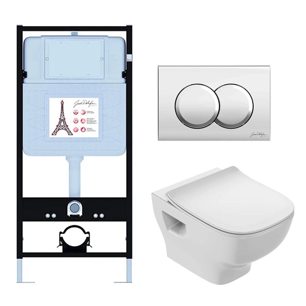 Struktura, комплект унитаза с инсталляцией, глубина унитаза 54см, клавиша хром глянец, с микролифтом, безободковый, быстросъемное, арт. EDF103-CP, Jacob Delafon