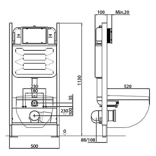 Комплект унитаза с инсталляцией Struktura глубина унитаза 54см, клавиша хром глянец, с микролифтом, безободковый, быстросъемное