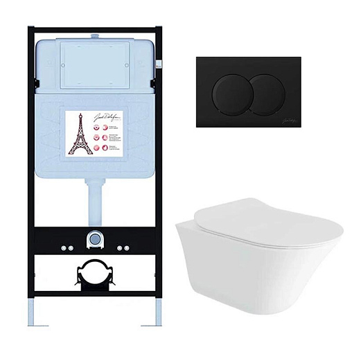 Vive, комплект унитаза с инсталляцией, глубина унитаза 56см, черная, с микролифтом, безободковый, быстросъемное, матовая, арт. E28079RU-BL, Jacob Dela