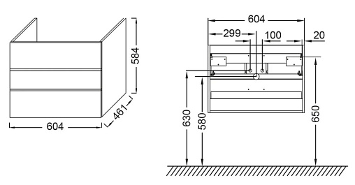 Модуль под раковину Lucien 60х46х58,4 см, цвет белый лак/дуб корбридж, система push-to-open
