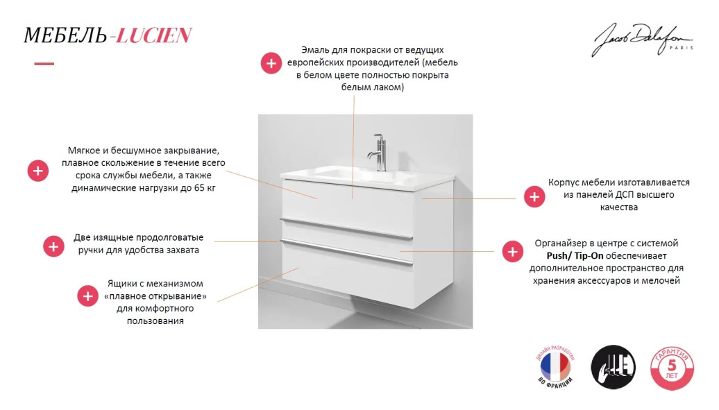 Lucien 60х46х58,4см, модуль под раковину, цвет белый лак, арт. EB2056-J5-J5, Jacob Delafon