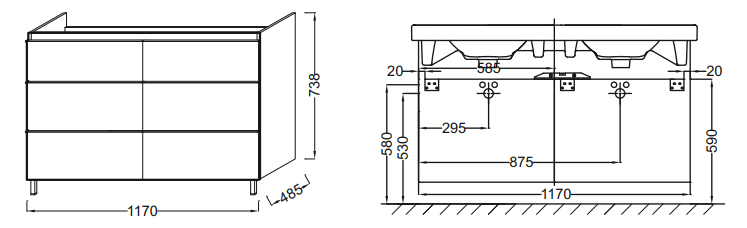 6 выдвижных ящиков с механизмом «плавное закрывание».