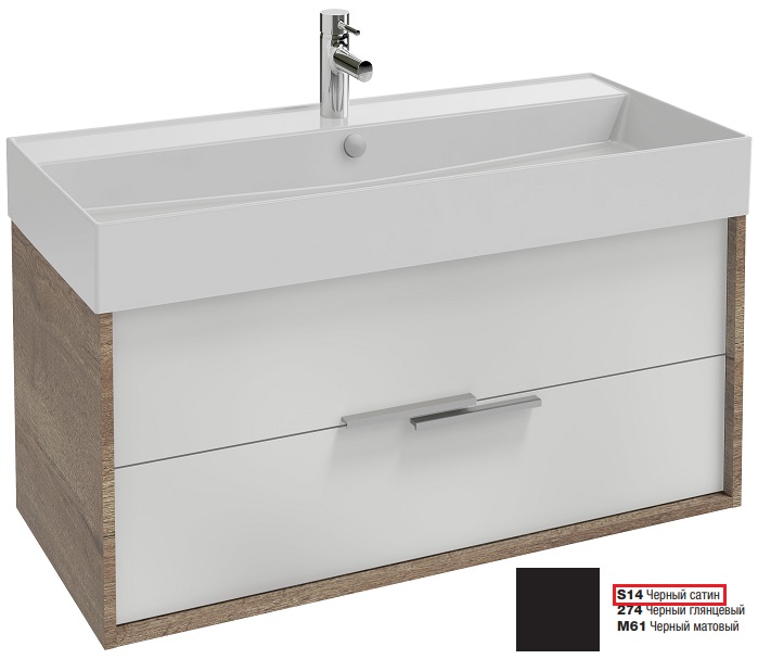 Vivienne 100х46х45см, модуль под раковину, корпус: дуб табак, фасад: черный сатин, без ручек, арт. EB1585-E52-S14, Jacob Delafon
