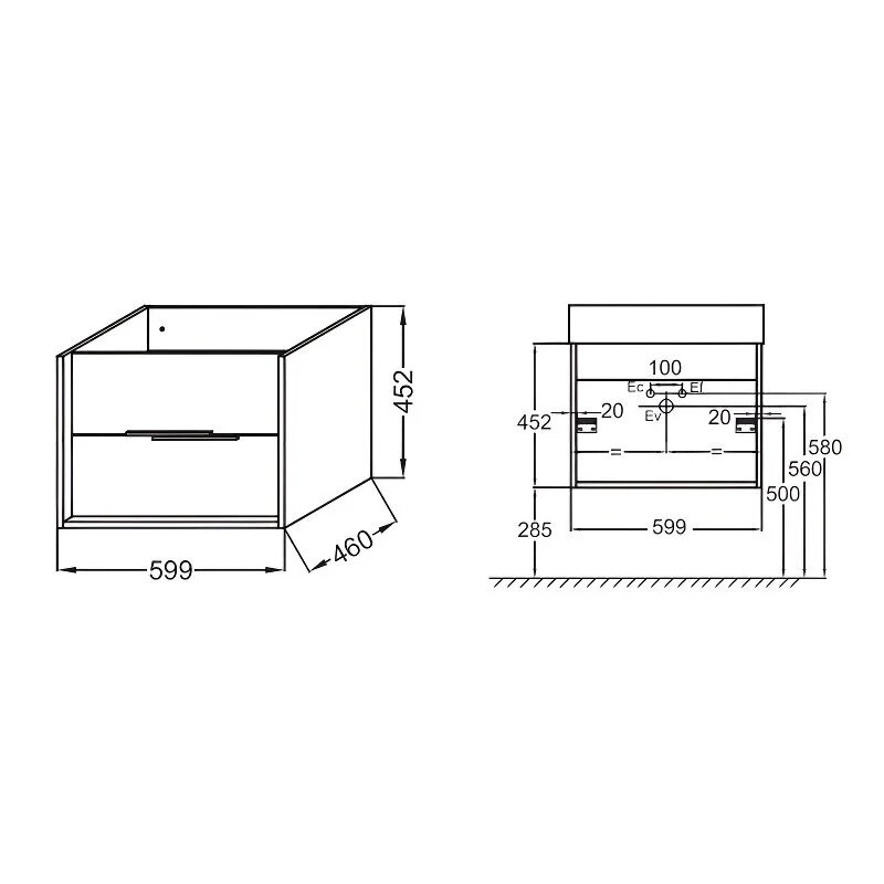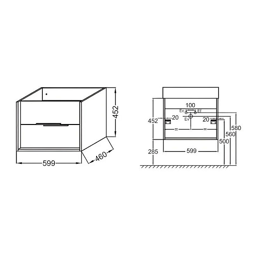 Vivienne 59,9х46х45,2см, модуль под раковину, корпус белый блестящий, фасад серый матовый, арт. EB1666-J5-J54, Jacob Delafon