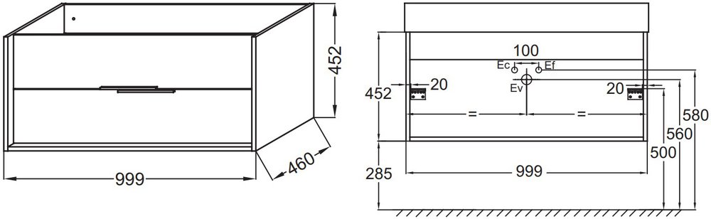 Vivienne 99,9х46х45,2см, модуль под раковину, 2 ящика, корпус белый блестящийб фасад черный сатин, арт. EB1585-N18-S14, Jacob Delafon