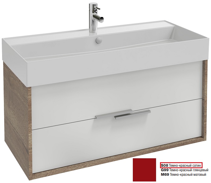 Vivienne 99,9х46х45,2см, модуль под раковину, 2 ящика, корпус дуб табак/ фасад темно-красный сатин, арт. EB1585-E52-S08, Jacob Delafon