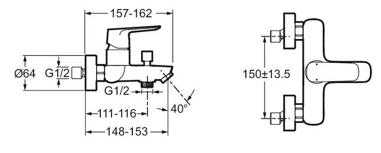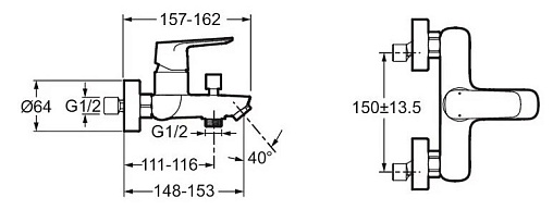 Настенный смеситель July+ неповоротный излив, с выходом на душ (без лейки)