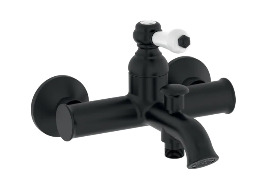 Louise, настенный смеситель, неповоротный излив, с выходом на душ (без лейки), чёрный цвет, матовый, арт. E24363-BL, Jacob Delafon