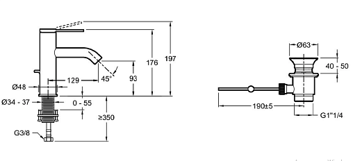 Grands Boulevards, смеситель для умывальника, неповоротный излив, золото, с донным клапаном, матовый, арт. E77958-4A-2MB, Jacob Delafon