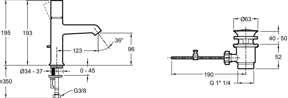 Смеситель для умывальника Rivoli матовый, неповоротный излив, чёрный цвет, с донным клапаном