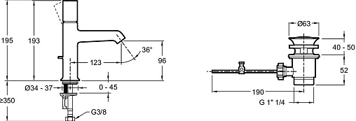 Rivoli, смеситель для умывальника, неповоротный излив, чёрный цвет, с донным клапаном, матовый, арт. E24323-BL, Jacob Delafon