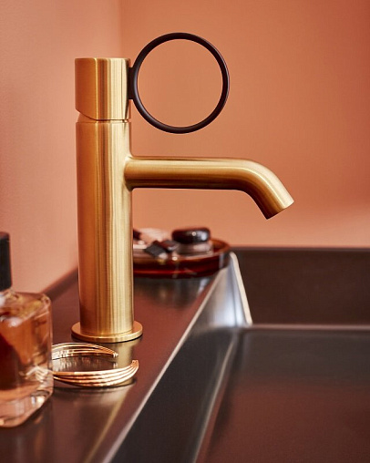 Смеситель для умывальника Vivienne Signature матовый, ручка черная, неповоротный излив, латунь, без донного клапана