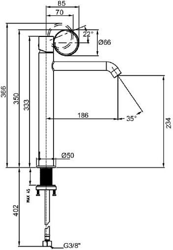 Высокий смеситель на столешницу Vivienne Signature 23,4 см, матовый, ручка черная, неповоротный излив, латунь, без донного клапана