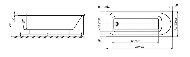 Акриловая ванна Odeon Rive Gauche 170х75 см