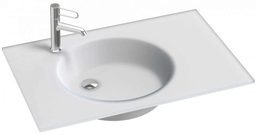 Раковина-столешница из матового стекла, 81 x 51 см, не предназначена для установки без мебели.