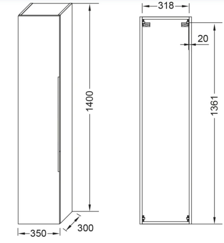 Шкаф-колонна Lucien 35х30х140 см, реверсивная установка двери, подвесной монтаж