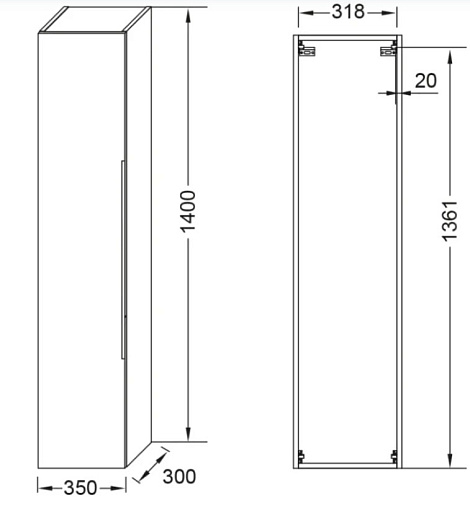 Lucien 35х30х140см, шкаф-колонна, реверсивная установка двери, подвесной монтаж, арт. EB2059-J5-J5, Jacob Delafon