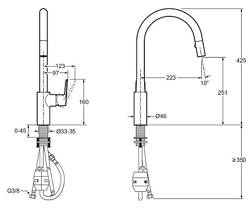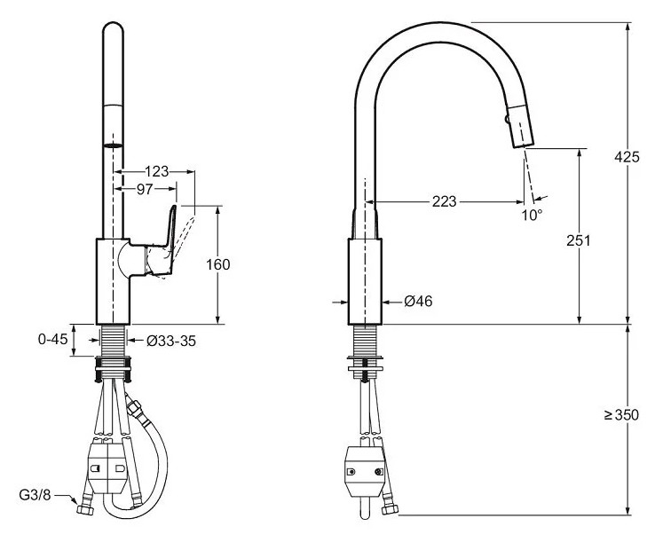 July+, смеситель для кухни с выдвижной лейкой, холодный старт, 2 режима, арт. E35687-4-CP, Jacob Delafon
