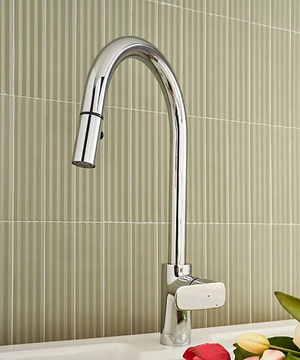 Смеситель для кухни с выдвижной лейкой July+ 2 режима, холодный старт