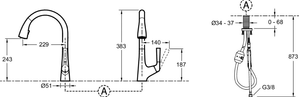 Смеситель для кухни с выдвижной лейкой Malleco матовый, чёрный цвет