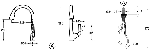 Мультифункциональный излив Режим распыления, дождя и функция «стоп»